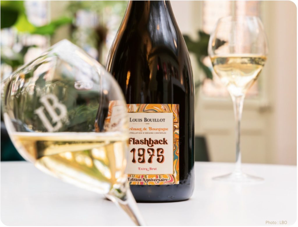 ● Chez Louis Bouillot à Nuits-Saint-Georges, la cuvée Flashback 1975, vieillie près de 100 mois sur lie en fûts de chêne, célèbre les 50 ans de l’AOC Crémant de Bourgogne avec une édition limitée à 9.057 bouteilles, présentée dans un étui collector.